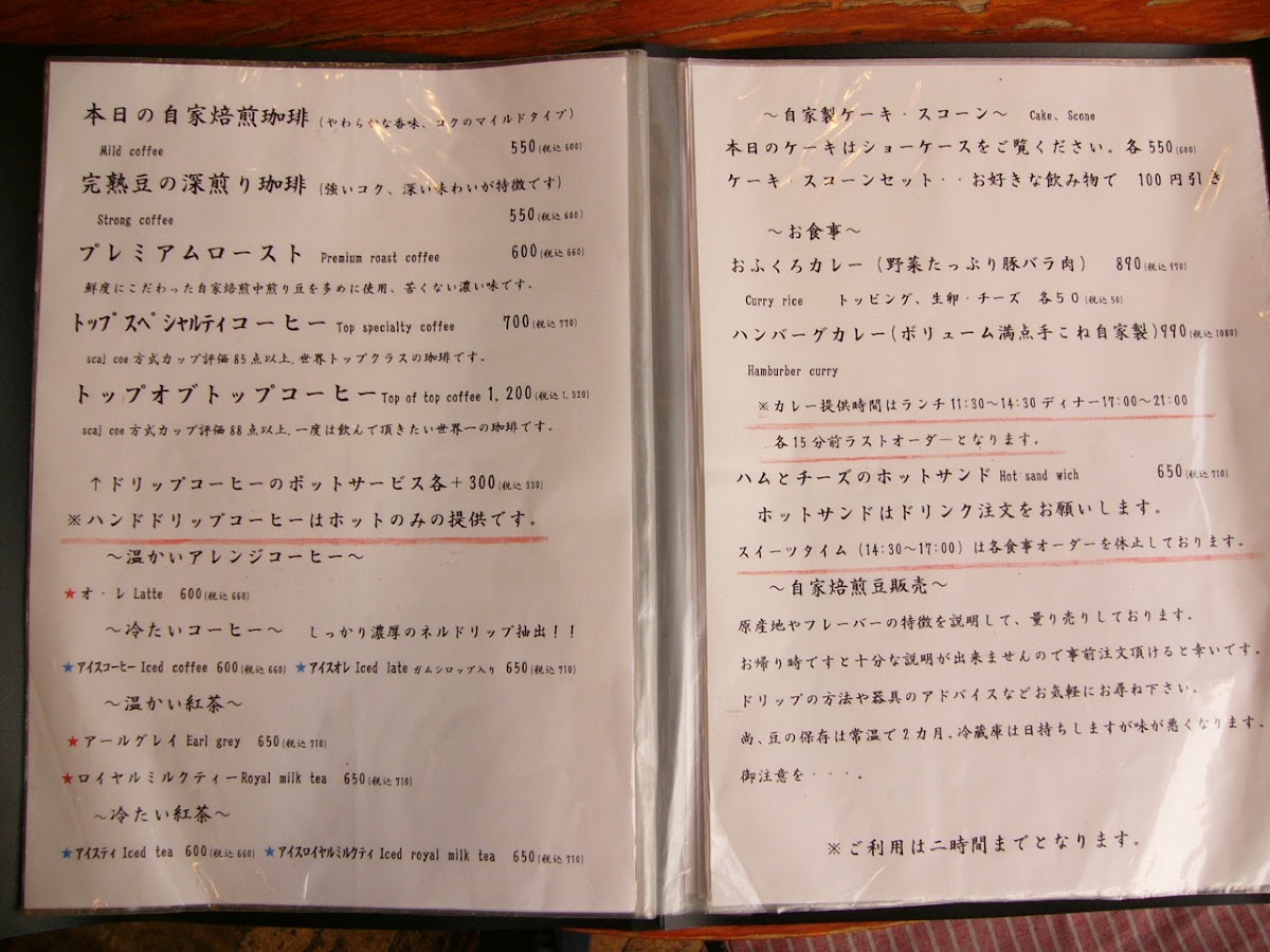 The menu features a delightful selection of offerings, perfect for satisfying your palate. During lunchtime, indulge in the おふくろカレー—a hearty pork belly curry brimming with vegetables, served alongside soup and salad for just JP¥890. It’s a beloved favorite among locals and visitors alike, known for its comforting flavors and generous portion sizes. Pair your meal with a cup of the café’s renowned ハンドドリップコーヒー, made from carefully selected specialty beans. Priced at JP¥550, each hand-dripped cup reveals a symphony of flavors, meticulously crafted by the owner who takes pride in roasting the beans daily.